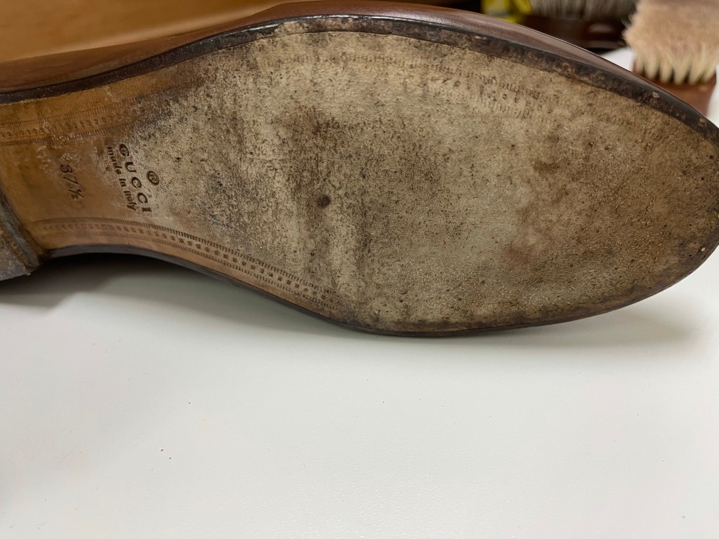 1. Setiap sebulan sekali, basuh tapak kasut kulit anda. Buang batu serta pasir yang melekat. Biarkan ia kering.