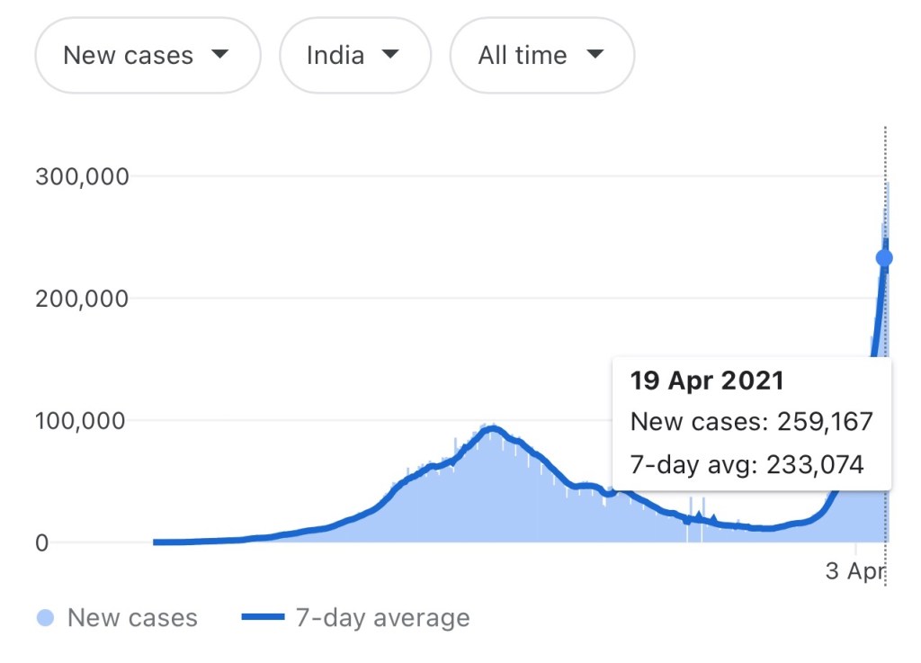India reported 295,000 new infections within 24 hours and more than 2,000 Covid-19 fatalities yesterday, the highest single-day death toll for the country so far.