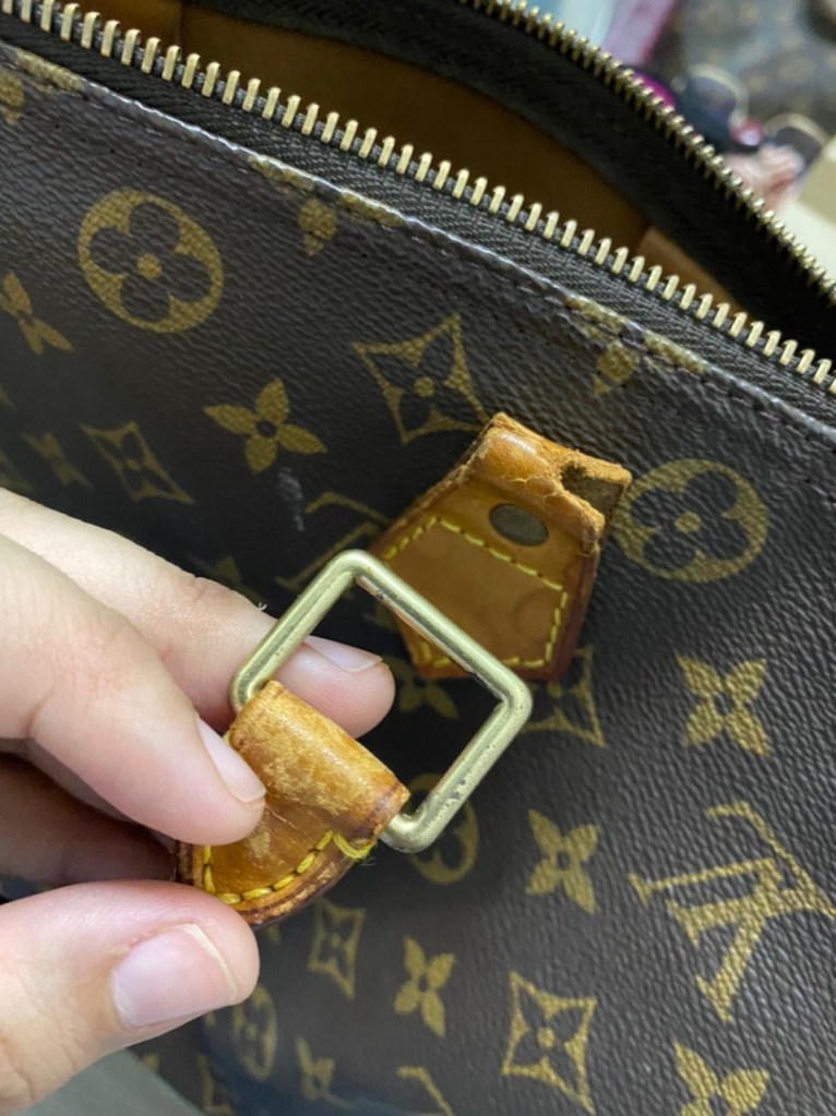 After much abused with heavy bag luggage, your leather bag handle may soon starting to tear off. Not to worry, help is around the corner. LV leather bag handle is made from vege tanned leather. What we would do is to replace it with a new leather. Bear in mind, we need to trace the pattern, remove the rivet and sew it back